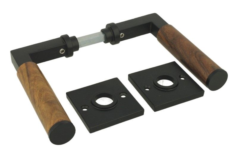 Doorhandle "Bauhaus" cast iron black powder coated with teak